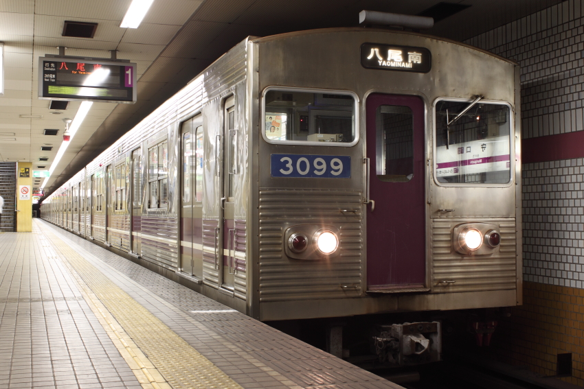 | 車歴 竣工:1977.2.8(3699) 1979.7.24(3099・3399・3599) 1981.3.11(3799・3499) 製造:アルナ工機(全車) 組成変更歴:あり(以下の通り記載) 1979.7.24〜1994.8.28 不足する車両を新造、竣工した際の編成(下線部は元御堂筋線用の3003編成中間車) (八尾南側から3099-3399-3699-3799-3499-3599) 1994.8.29 冷房化の際に組成車両を新30系で統一するため、対象から外れた3699・3799・3499(初代)を廃車 1995.3.31〜 編成全車を新30系で統一(3398→新3699・3395→新3799・3095→新3499) (八尾南側から3099-3399-3699-3799-3499-3599) 冷房化・大規模更新:1995.3.31(全車) 連結面間転落防止装置設置:2001.12.18 最終全検出場:2008.5 最終運用:2011.12.28or29 廃車:2012.1.8 |